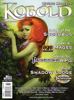 Bueno, añadiendo un número más del Kobold Quarterly, en este caso el 21. Como siempre, la revista viene cargada con material para Pathfinder, D&D 4E y el sistema AGE. Hay que decir que la revista sólo ha llegado al número 23 y -muy tristemente- ha sido cancelada, por lo cual estaré atento de conseguir los dos números que harían falta.